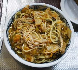 一通り食した後の締めは、中華麺で煮込みラーメン風。もちろん好みで、うどんにしてもおじやにしてもいいでしょう。炭水化物の投入により、立派に主食として成立します。