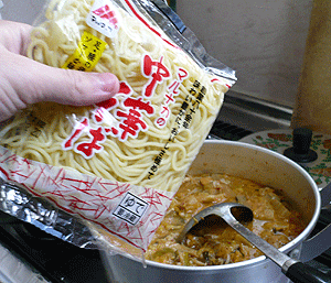 ええっ!?と思う方も多いかと思いますが、これがなかなかいけます。汁にコクととろみがついて食べごたえが増すし、冷めにくくもなります。ネタ元はお察しの通り「担々麺」。ぜひ一度お試しを!(より凝ってみる場合は、あらかじめ豚肉にすりごまを揉み込んでおくとなおウマイと思います)
