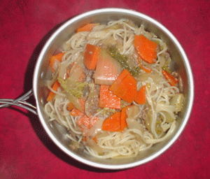 ・・やはりビーフンは「たっぷりのお湯」で茹でないとダメらしいので、水が貴重な登山の料理には向かないことが判明しました。試さなくても分かりそうなもんだが