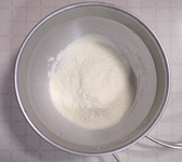 スキムミルクをコッヘルに入れ、水で溶き、フルーチェを入れてかき混ぜます。