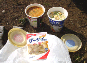 しじみは食材をパッキングする時、「ひょっとしてお昼時に雨が降って、煮炊きができないかも・・」と思って、予備食に菓子パンをもっていくことがよくあります。