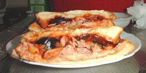 ^-^;)、それをホットサンドで再現したのがこのメニュー。ミートソースは汁気が強いのでピザソースで代用していますが、一応同じトマトソース系ってことで・・(早くもトーンダウン)。