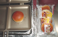 これは特にオリジナルでも何でもないんですが、サンドイッチのデザートに、クリーム入りのミニ菓子パンをあぶって食べるとおいしいです。チョコ、ピーナッツバター、ミルク、カスタード等々、いろんな味が楽しめますよ〜。