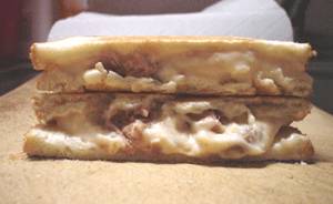 しかし!今回はその限界にあえて挑んでみました。缶詰やパウチなどの保存食品を具材に使い、登山3日目の朝食・昼食でも食べられるホットサンドを開発してみたのです。その名も「グラタンサンド」。マ○ドナ○ドの某メニューに触発された部分が大きいです(