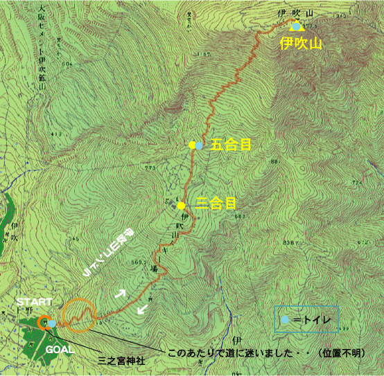 その年の大会会場が、この伊吹山でした(やっと出てきた!)。1377m、滋賀県最高峰です。これを登山口から頂上まで、20kgの荷物を担いで走って登るという過酷なレース。キャプテンM(これは友人Mとはまた別のMです)と隊員O、H、しじみの4人パーティーは、闘志に燃えて登山口に立ったのでした。