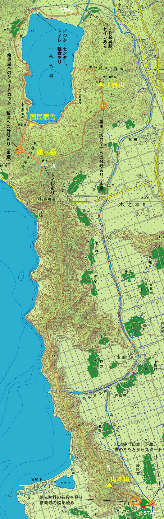 | 交通 | JR河毛駅から湖北町タウンバスで「山本」下車。橋を渡って進むと「朝日神社」があり、そこが登山口。縦走コースなので車では行かない方がよいでしょう。(回収が面倒) | |