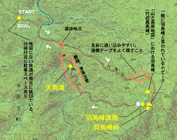 しかししかし。しじみが知る限り「山と高原地図」のハト峰はヤブ山で、登る道はありませんし、ヤブをかきわけて登ろうなどとはまったく思わないさえないピークです。