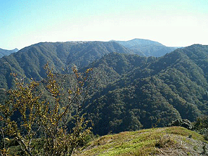 余談ですが、北西の尾根に入った場合、ずーっと奥に進むとタイジョウというマイナーなピークがあります。しじみとMは何年か前に別ルートでこのタイジョウに登ったことがあるのですが、ヤブと痩せ尾根のすさまじい道しかなく、ピークは眺望皆無で、下りも道のない谷をムリヤリ降りて、吐き出されるように渋川に出てきた・・という有様で、正直二度と登りたくない山でした。