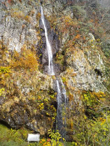 道中の名所「幽幻の滝」も紅葉に包まれていました。