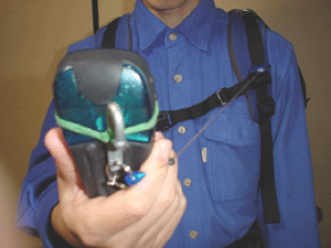 ピンオンリールは何のためかというと、まれにフックが外れた時に、GPSが落ちて地面に激突しないための安全策です。GPSの重量を支えきれるわけではありませんが、シュルシュルとゆっくり糸が出て、腰のあたりで落下が止まります。フックを掛けそこねた時にも安心です。