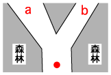 2005年春のこと。しじみは普段登山をしない友人たちを誘って、大阪の某山に登りました。尾根道を北に進む途中、図1のような分岐に出会いました。