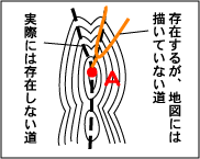 *実際に道があるが、ヤブなどに隠れて見えない